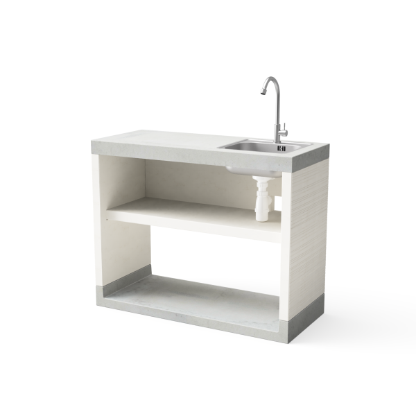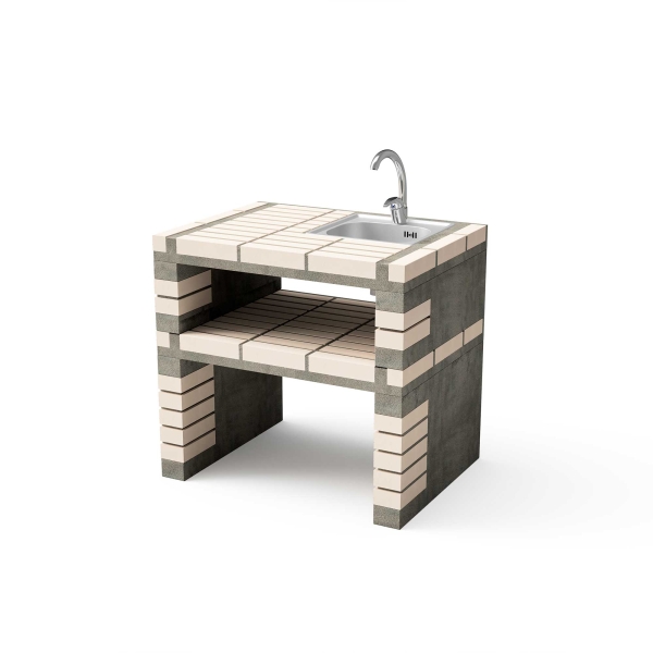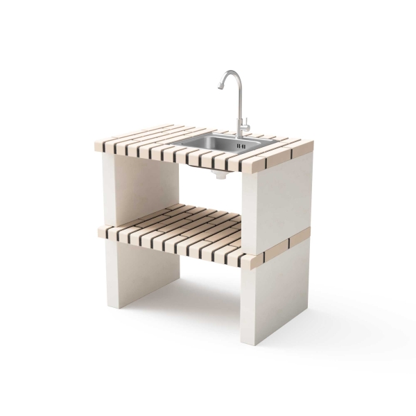 Modulo Bancada Durango en hormigón blanco y ladrillo con Fregadero y Grifo