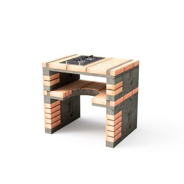 Modulo bancada California XL Plus en ladrillo naranja y hormigón con Placa de Gas EFX 30.1 2G (uso en interiores) con 86,5 x 64 x 81h cm