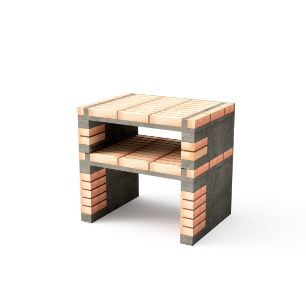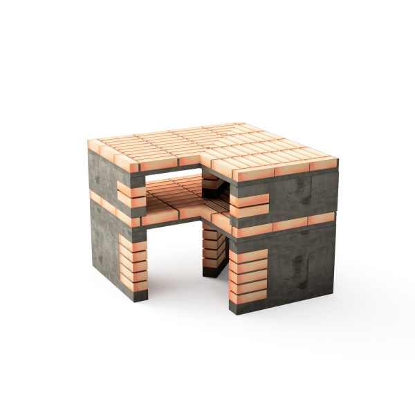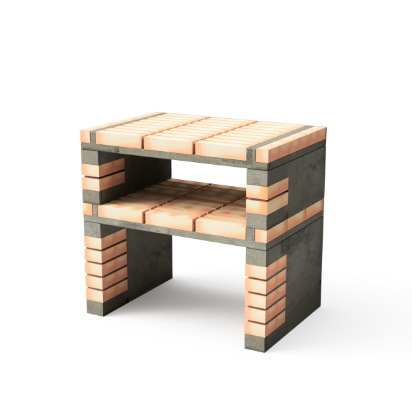 Modulo bancada California en ladrillo naranja y hormigón con 86,5 x 58 x 81h cm