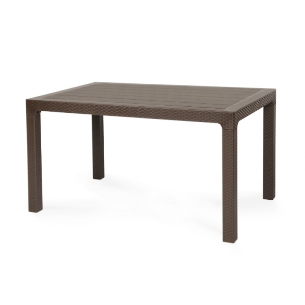 Mesa TROPICAL, ratán, polipropileno marrón chocolate, 140 x 80 cms