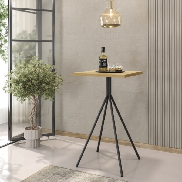Mesa BISTRÓ, alta, metal negro, tapa de MDP color miel, 60 x 60 cms