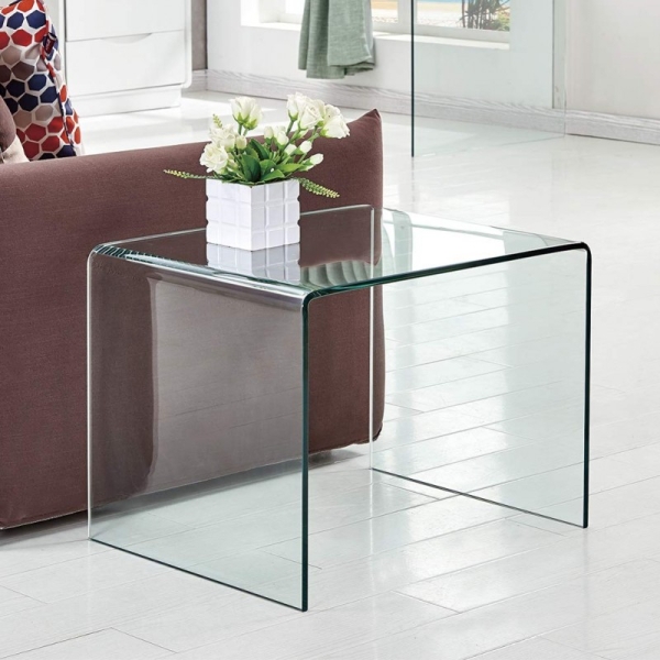 Mesa CHEVAL (SU), baja, cristal curvado, 60 x 60 cms