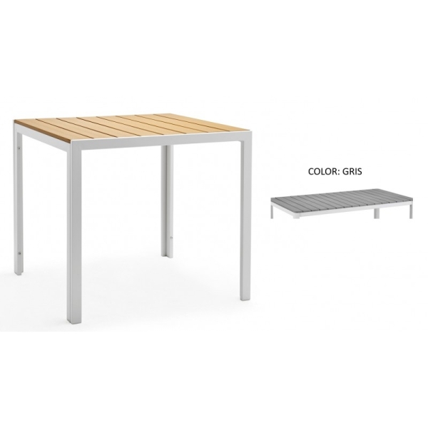 Mesa GARIBALDI, metal blanco, tablero polywood gris, 80 x 80 cms.