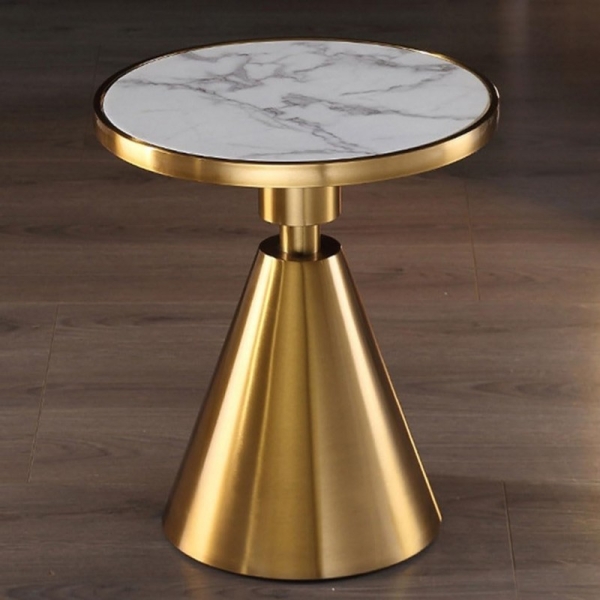 Mesa JASSY BL, baja, dorada, tapa cerámica mármol blanco, 50 cms