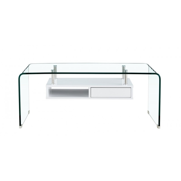 Mesa NEWARK, baja, estante blanco, cristal curvado, 110 x 60 cms