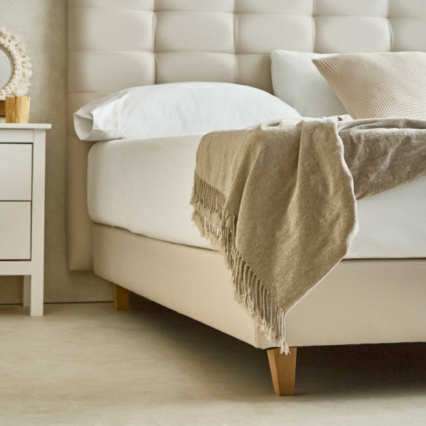 - CABECERO MIRÓ CORTO POLIPIEL IVORY CRUDO + CANAPÉ MADERA ECO GRAN CAPACIDAD NATURAL 1