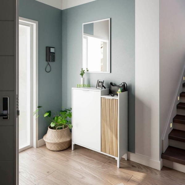 La regla de los 90 cm: Si tu pasillo es estrecho, asegúrate de que quedan al menos 90 cm libres de paso tras colocar el mueble. Si no te caben, opta por nuestras consolas suspendidas o zapateros ultra-estrechos (de menos de 25 cm de fondo).