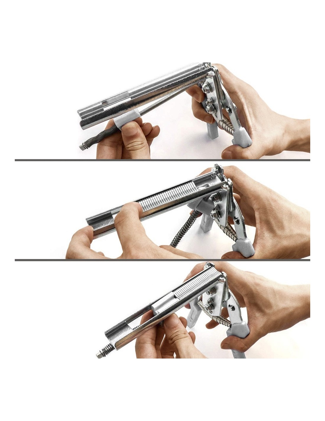 Este innovador utensilio de trabajo es un aliado indispensable para cualquier profesional en la construcción o mantenimiento de mallas y enrejados. Ya sea para cerrar brezos, alambradas, setos, cercas u otros materiales flexibles, esta herramienta garantiza una instalación segura y eficiente. Nuestra dedicación a la calidad y el bienestar del usuario se refleja en cada detalle de este producto.