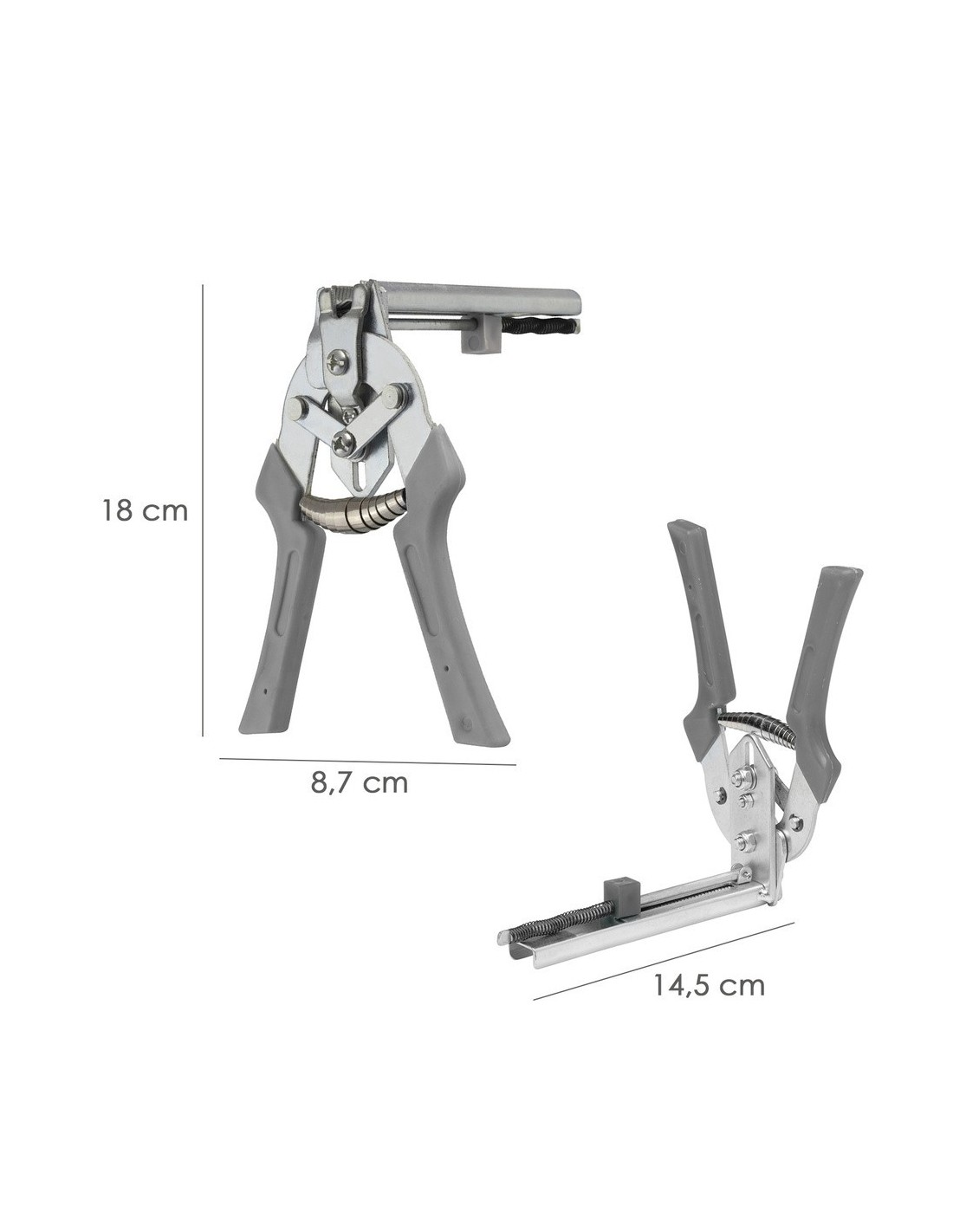 - Tamaño del Alicate: Diseñado para ser manejable pero fuerte, con una longitud total de 30 cm y una abertura de hasta 25 mm. Esto permite grapar fácilmente alambre y otros materiales flexibles sin sacrificar la precisión.