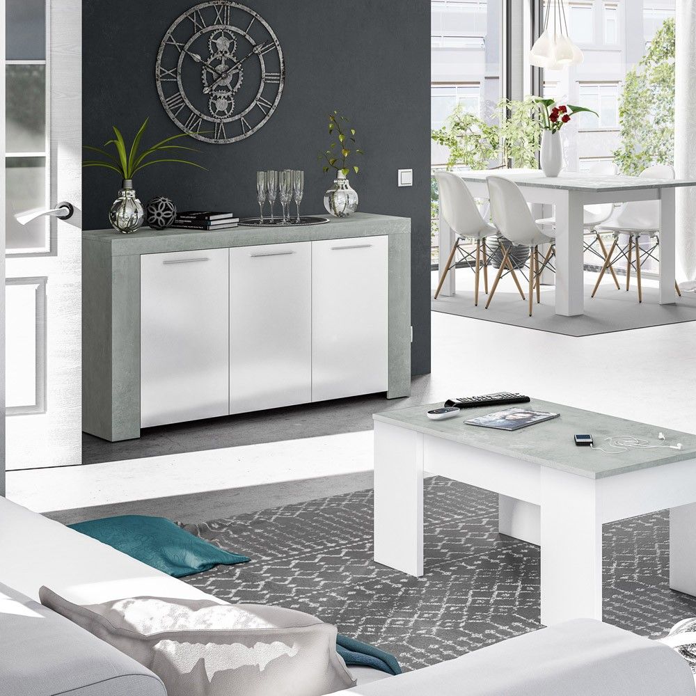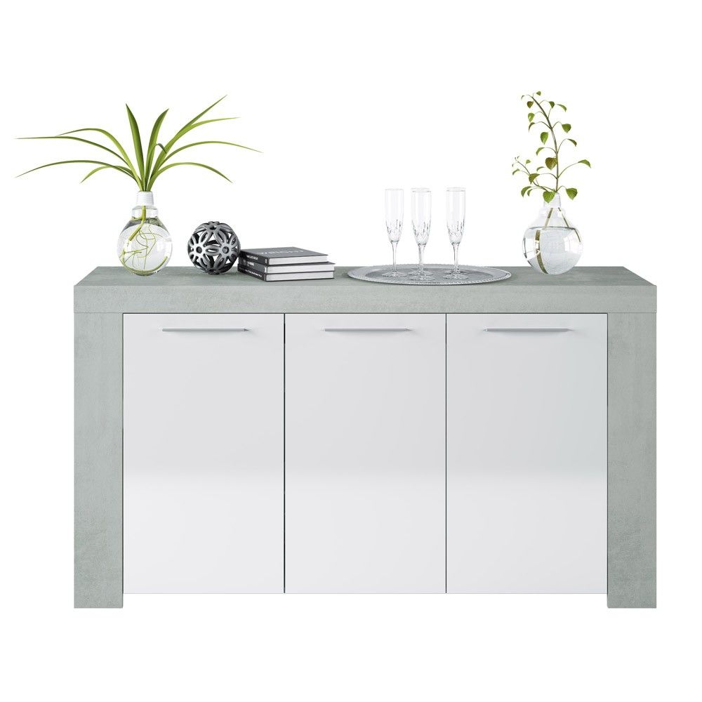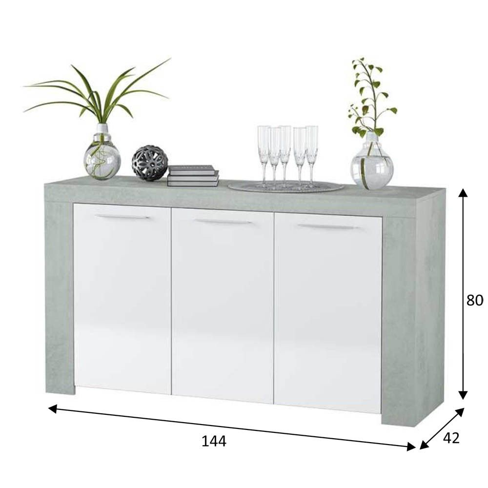 Aparador Ambit cemento y blanco Artik 3 puertas 144 x 80 x 42 cm