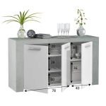 Con tres puertas que dividen el aparador en dos compartimentos, este mueble ofrece una gran capacidad de almacenamiento. La estructura enmarcada y el acabado cemento aportan una sensación de robustez y versatilidad, perfecta para decoraciones modernas y contemporáneas.