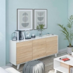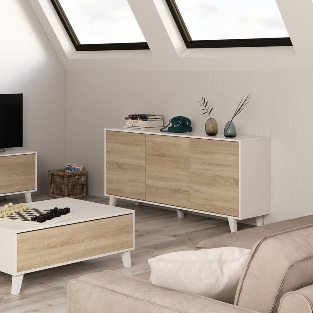 Descubre el aparador buffet Zaiken Plus, un mueble multifuncional que combina estética y funcionalidad en tu salón o comedor. Inspirado en el estilo nórdico, este aparador destaca por su acabado blanco brillo y madera roble Canadian, creando un espacio elegante y versátil.