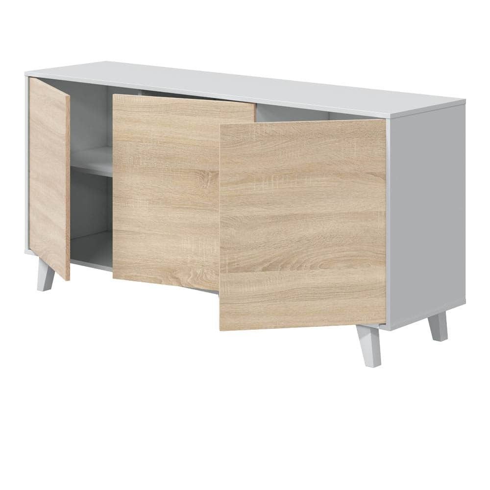 Aparador comedor Zaiken Plus roble Canadian – blanco Brillo 154 x 75 x 41 cm