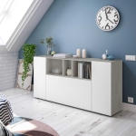 Ubica el aparador Loira en tu comedor para almacenar vajilla, cubertería o mantelería. También es perfecto para el salón, donde puedes organizar libros, elementos decorativos o documentos importantes. Combínalo con decoración en tonos neutros y materiales naturales para resaltar su estilo moderno.