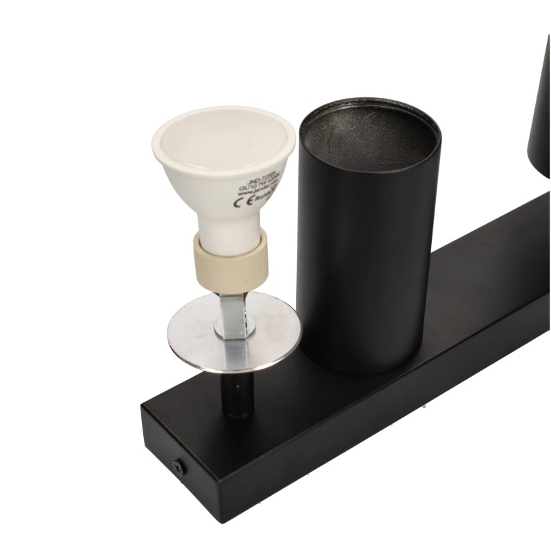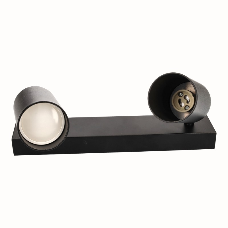 Montaje en superficie con unas dimensiones de 2,5×16,5 cm y 2 lámparas de 5,5 cm de diámetro, se puede montar fácilmente desde el techo o desde la pared. El tubo se desenrosca para colocar la bombilla.