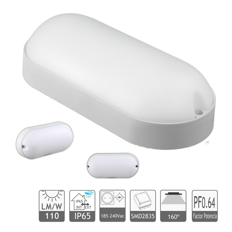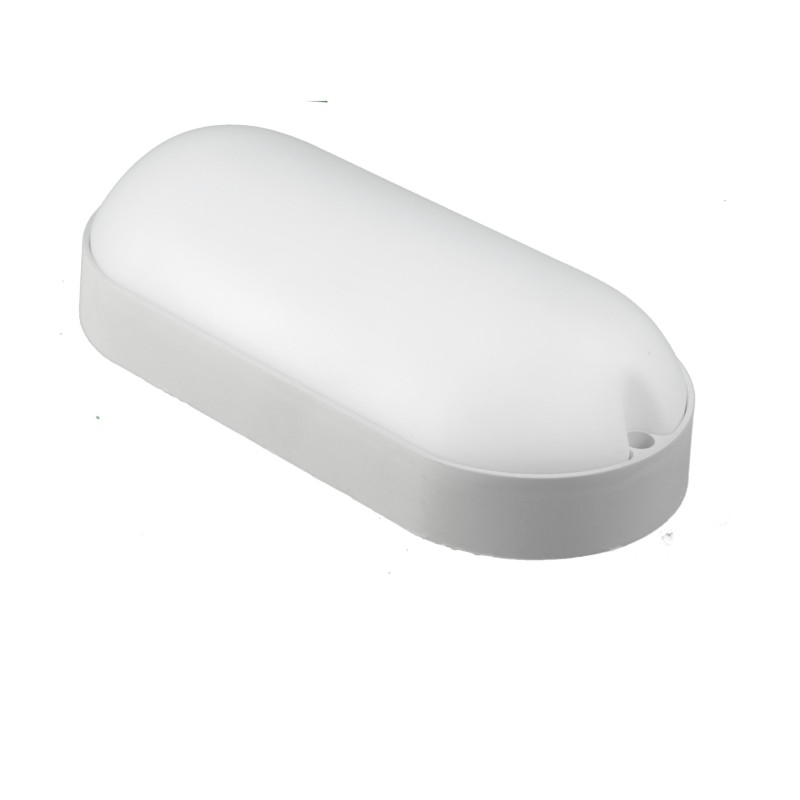 Aplique led de 15W fabricado en plástico ABS anti golpes de color blanco, para interior y exterior IP54. Forma semi oval de 21*10cm. Luz blanca fría 6000K