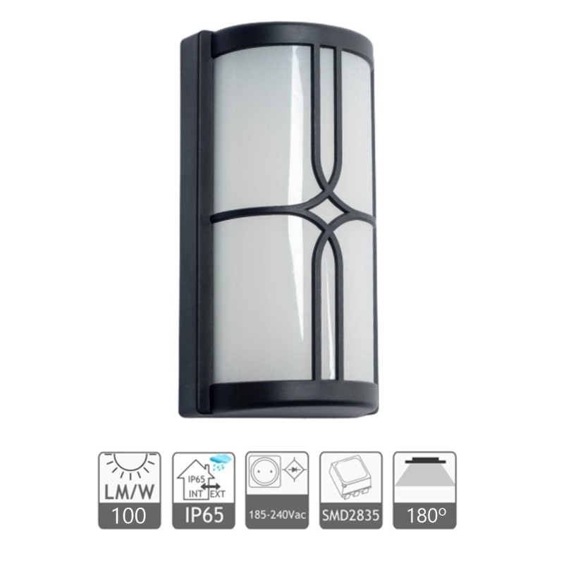 Aplique led de 20W fabricado en material termoplástico de color negro, para uso interior y exterior IP65. Diseño moderno de 260mm de alto. Luz blanca cálida 3000K.