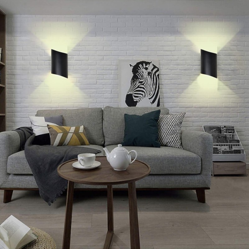 Fabricado en aluminio de color negro, dispone de dos chips cob protegidos con cristal, uno arriba y otro abajo. Color de luz blanco cálido 3000K.