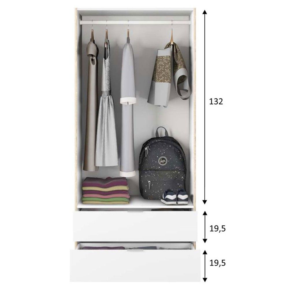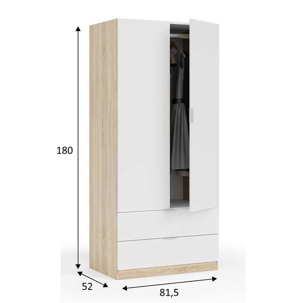 Armario 2 puertas 2 cajones Low Cost Madrid Roble Canadian – Blanco Artik 81,5 x 180 x 52 cm