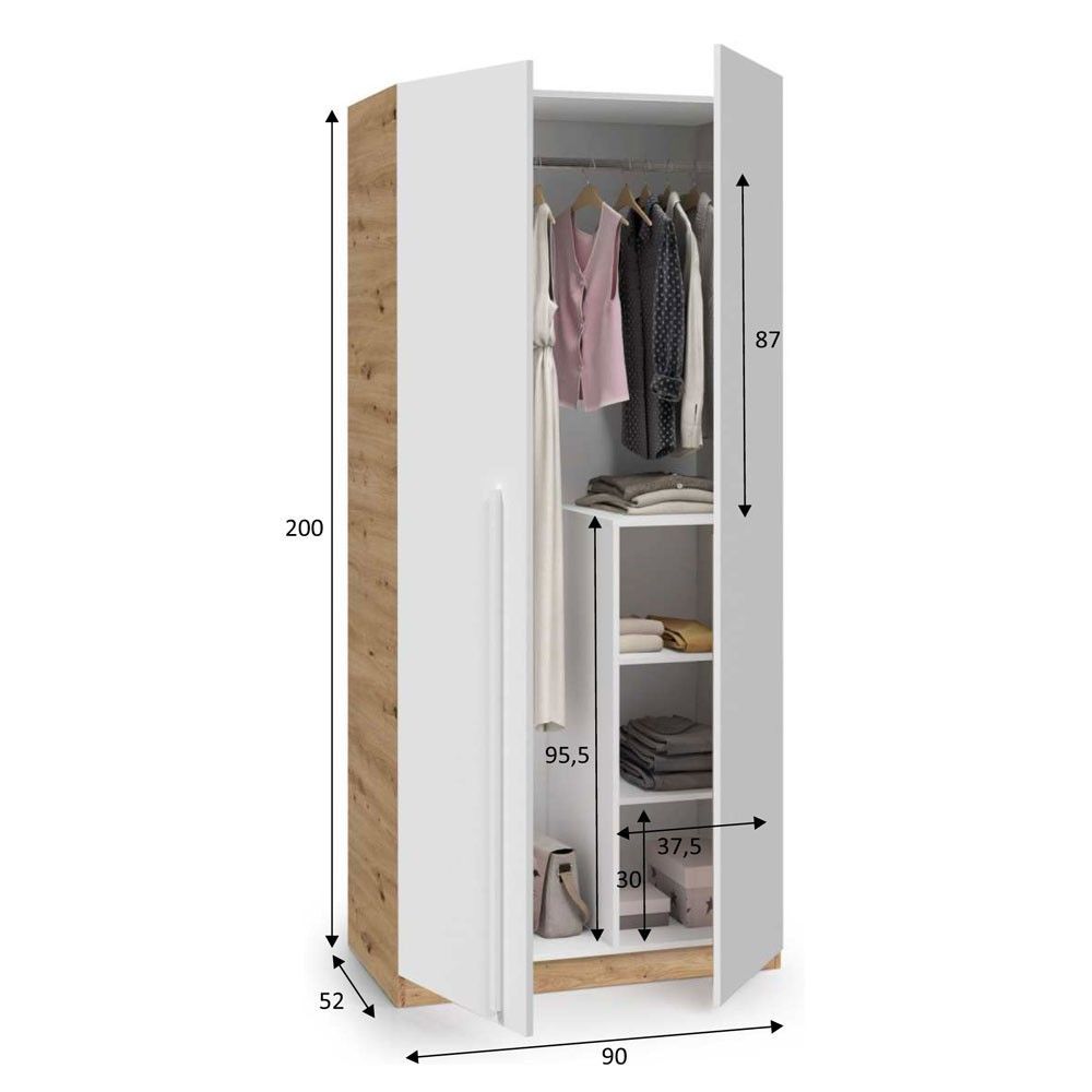 Armario 2 puertas juvenil Noa Roble Nodi – Blanco Artik 90 x 200 x 52 cm