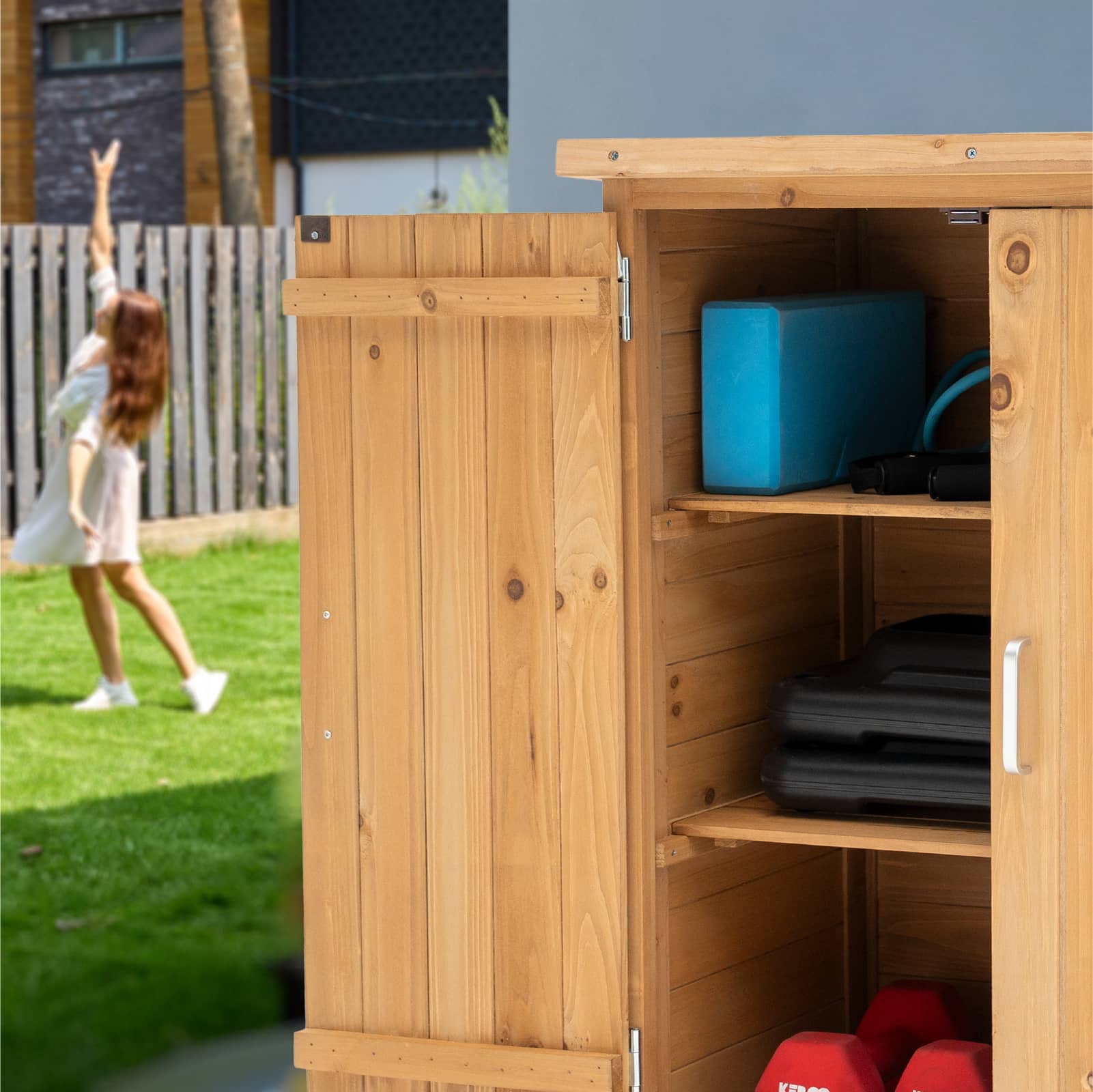Con tres amplias zonas de almacenamiento, podrás guardar herramientas, utensilios de jardín, toallas de piscina y mucho más. Las puertas abatibles facilitan el acceso a todo su contenido, mientras que las patas elevadas protegen el interior de la humedad y el contacto directo con el suelo. El techo inclinado evita la acumulación de agua de lluvia, permitiéndote colocarlo incluso contra una pared sin problemas.