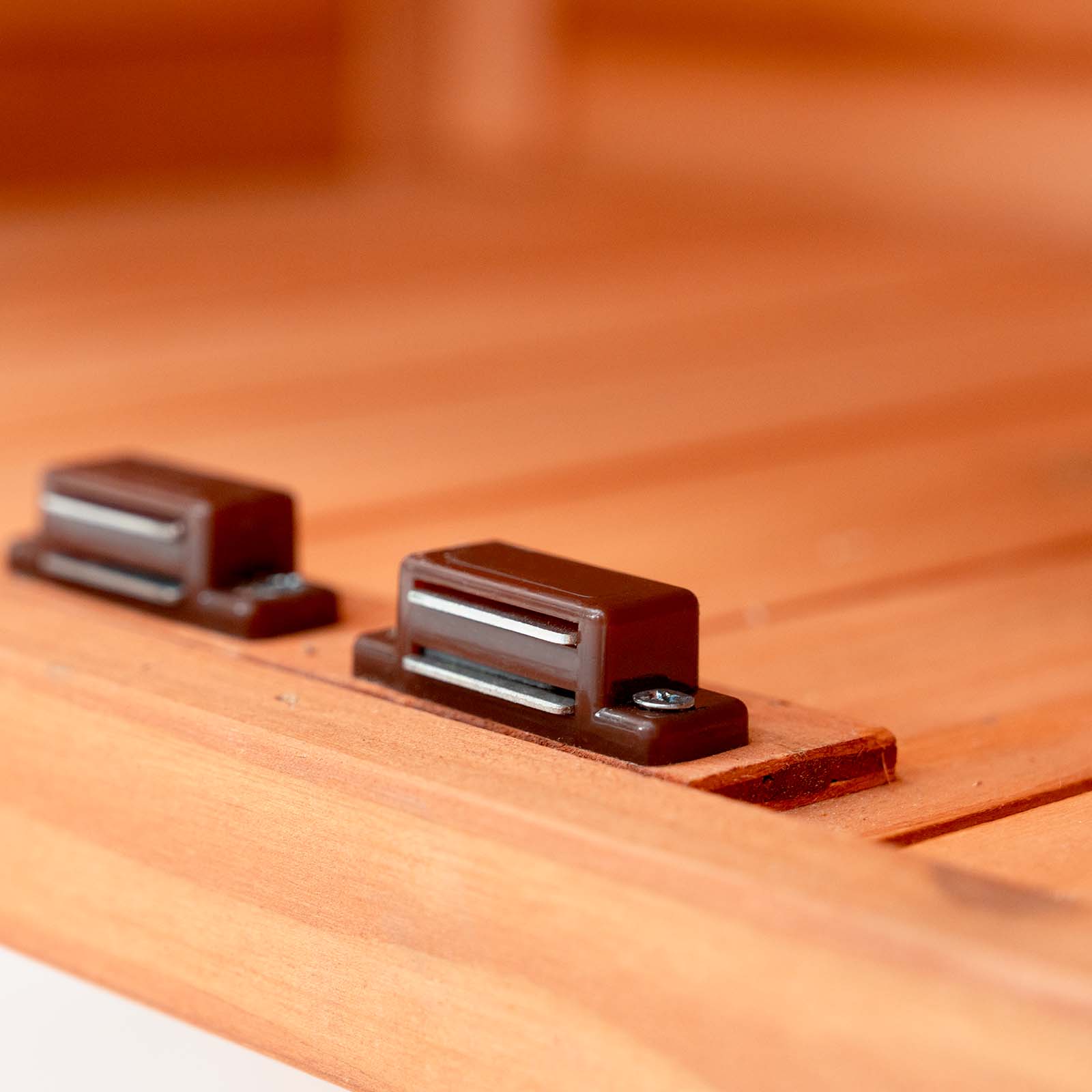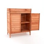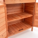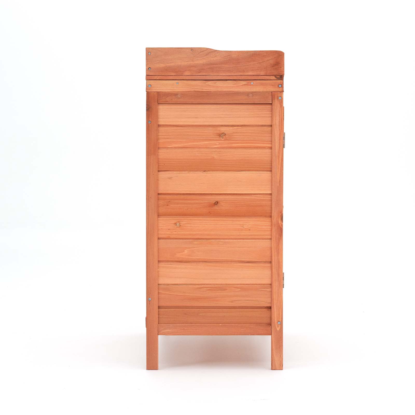 Diseñado para resistir las inclemencias del tiempo, este armario cuenta con patas elevadas que lo protegen de la humedad y el moho. Para una mayor protección, se recomienda aplicar un barniz o capa protectora adicional.