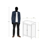 Su estructura robusta de 10 mm de grosor proporciona un espacio amplio para almacenar tus objetos, mientras que las puertas abatibles facilitan el acceso al interior. La encimera galvanizada añade versatilidad, convirtiéndolo en una práctica mesa auxiliar o mueble bar. Además, cuenta con dos zonas de almacenamiento con diferentes alturas de baldas, adaptándose a tus necesidades específicas.