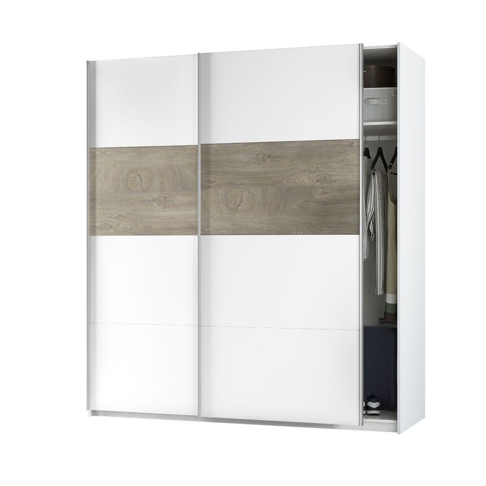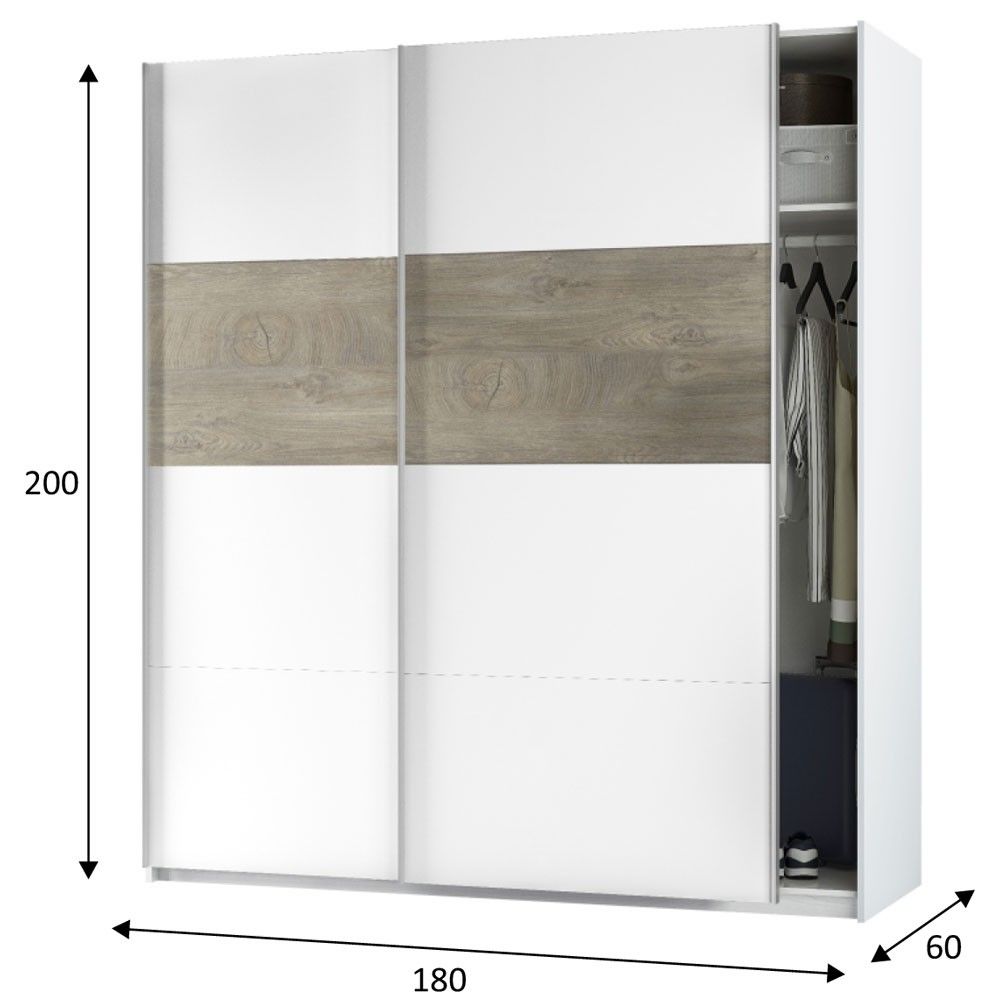 Armario de puertas correderas Oikos ARM182A Blanco Artik – Roble Alaska 180 x 200 x 60 cm
