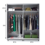 El armario está fabricado con tablero de partículas melaminizado, con cantos de PVC para mayor resistencia y durabilidad. Las barras de colgar son de aluminio, asegurando su robustez.