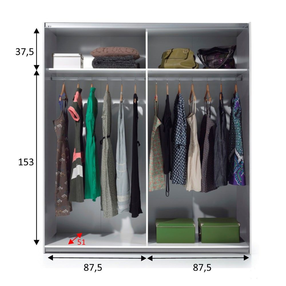 - Armario de puertas correderas: 180 cm (ancho) x 200 cm (alto) x 60 cm (fondo).