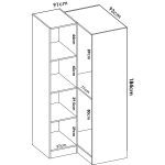 Diseñado específicamente para encajar en rincones, el Armario ESSEN aprovecha cada centímetro para ofrecerte una capacidad de almacenamiento excepcional y una organización interna muy práctica: