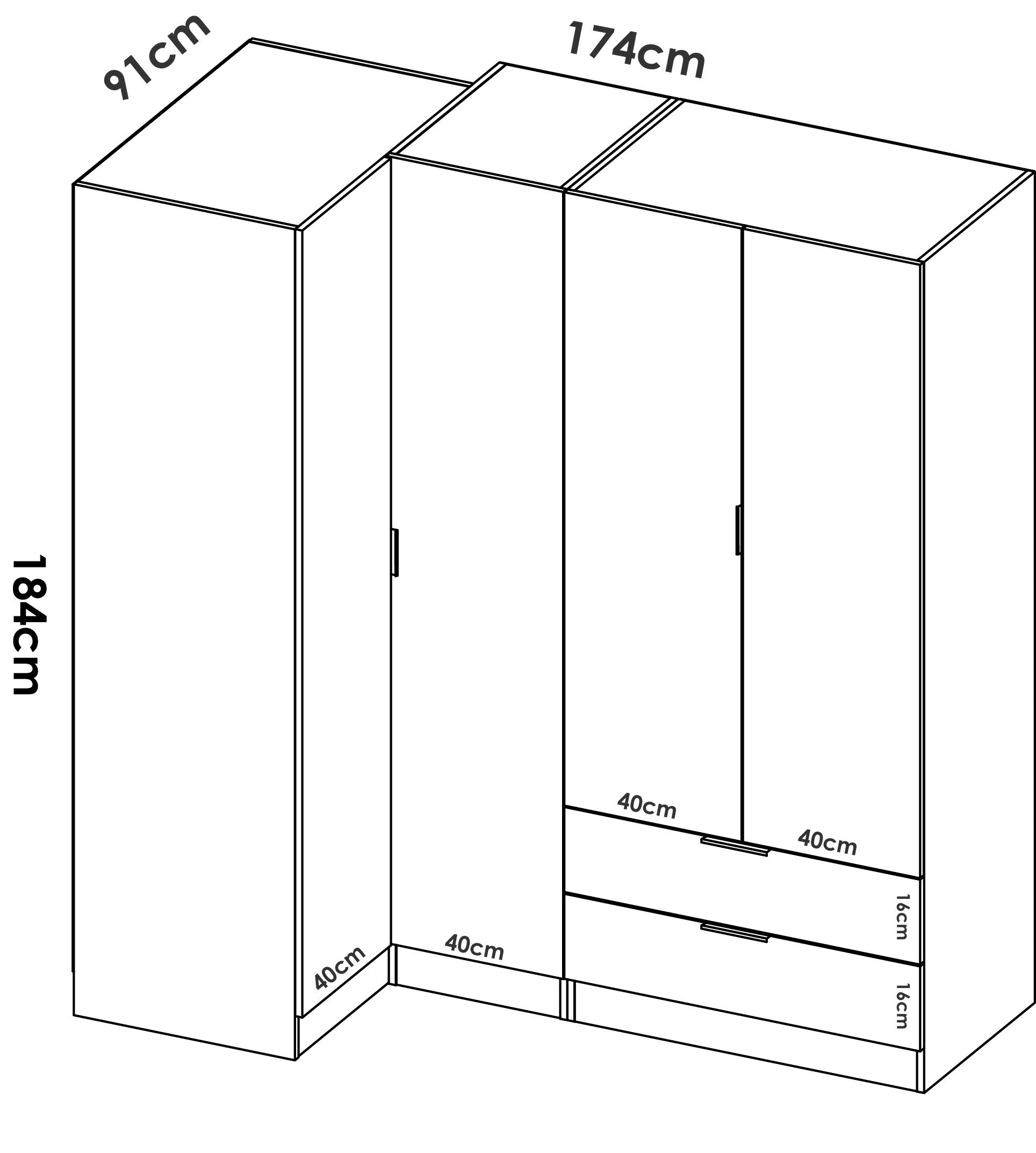 El Armario de Rincón ESSEN presenta unas dimensiones pensadas para la armonía y el espacio en tu habitación: