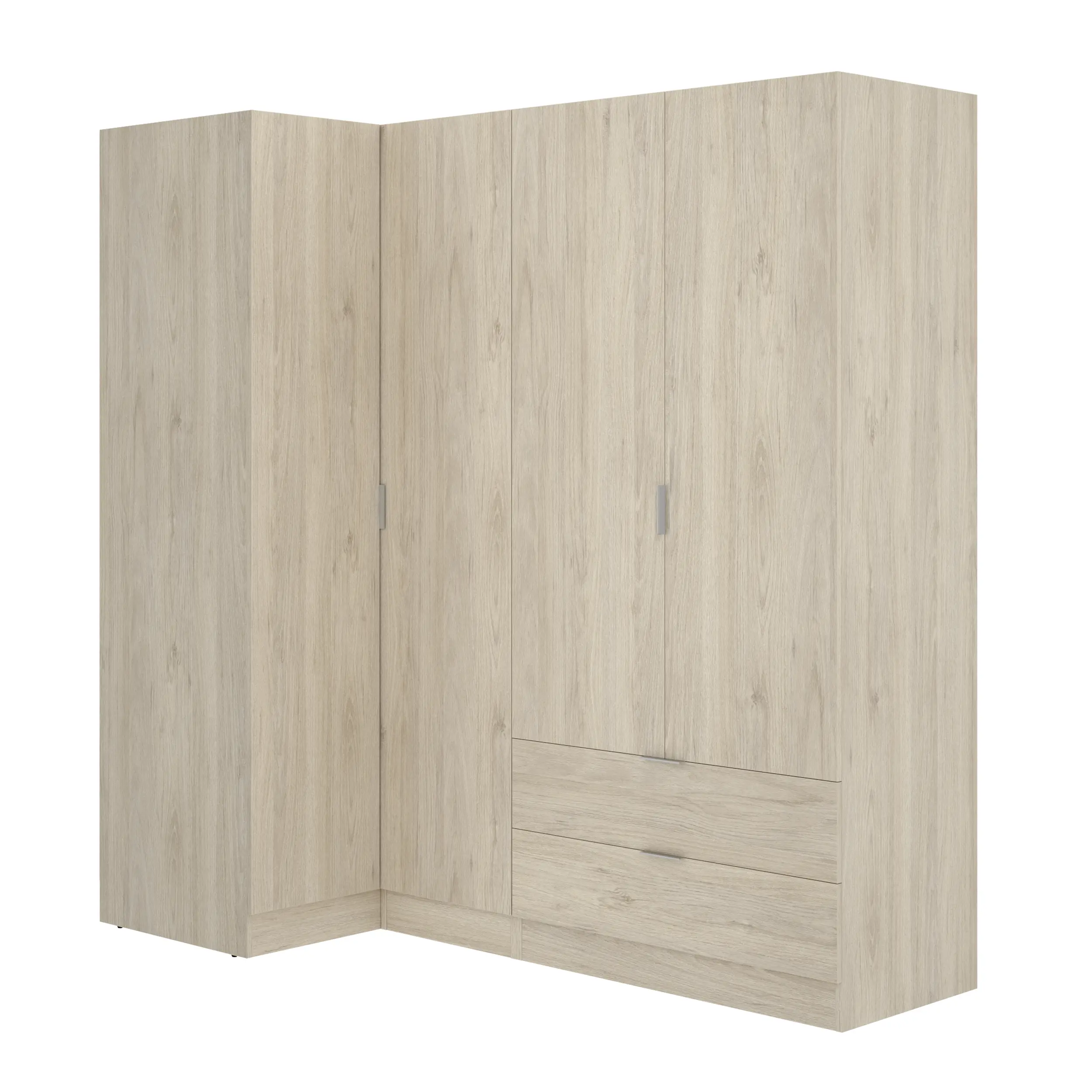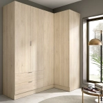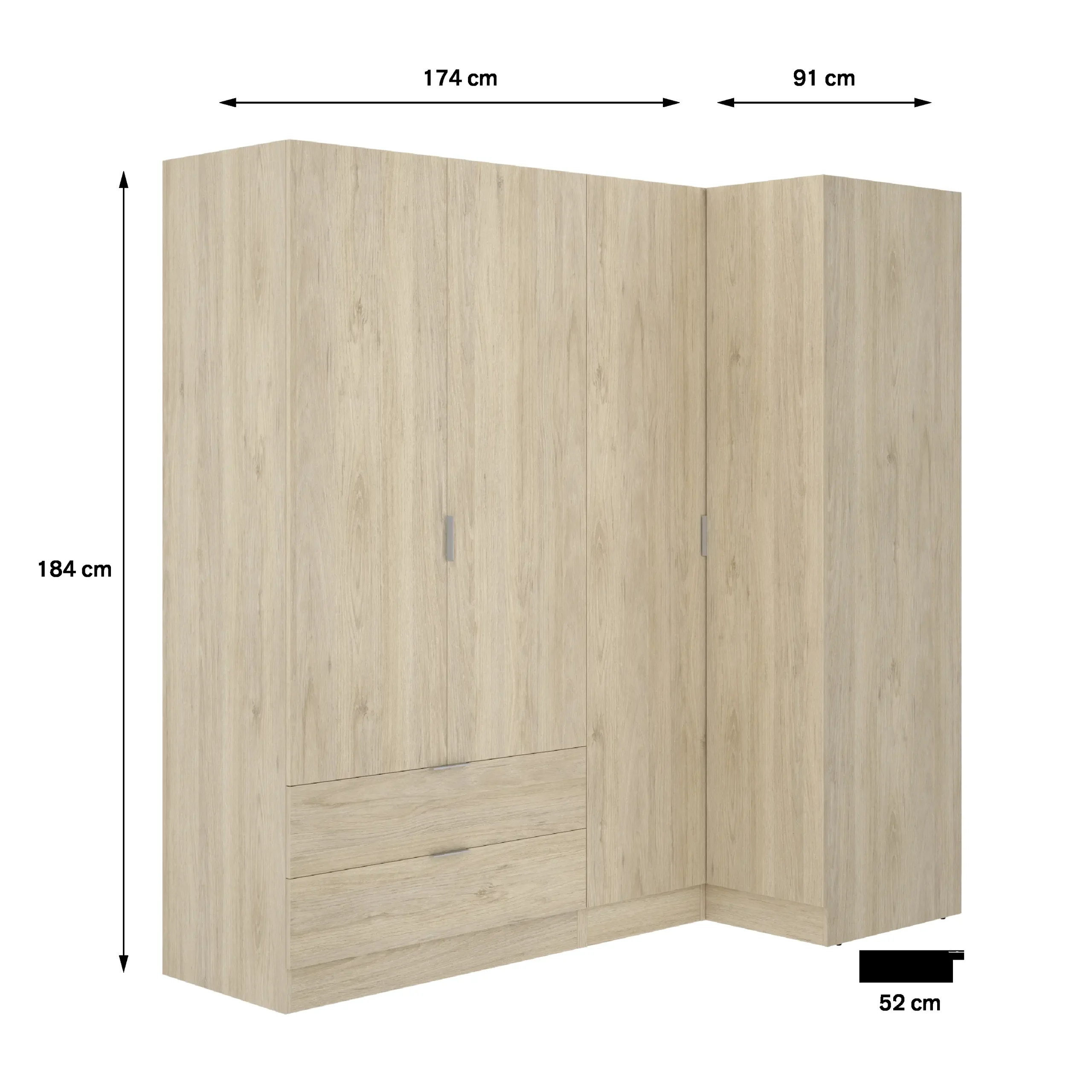 El Armario de Rincón ESSEN destaca por su diseño moderno y elegante, que se adapta perfectamente a cualquier estilo decorativo. Su acabado en Roble Natural aporta una calidez y un toque acogedor a la habitación, creando un ambiente tranquilo y armonioso que evoca la conexión con la naturaleza. El estilo de puerta de panel liso refuerza su estética atemporal y sencilla.