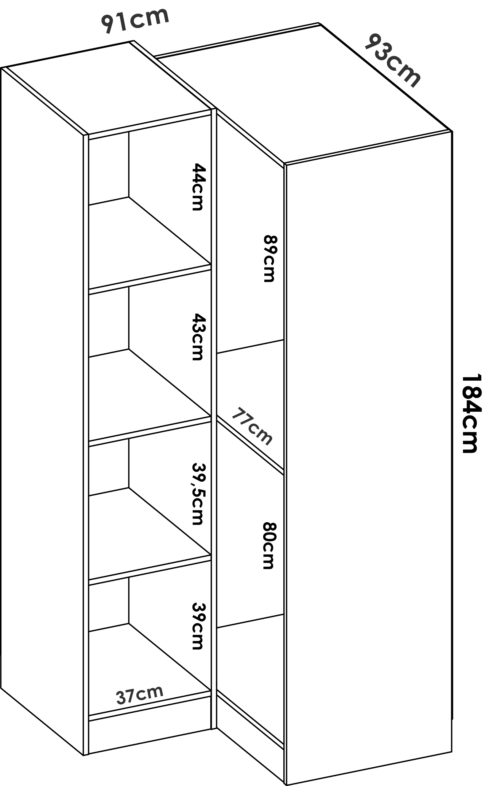 - Funcionalidad para Rincones: Su diseño específico de rincón asegura que aprovechas al máximo cada centímetro, ofreciendo una gran capacidad de almacenaje que un armario recto no podría proporcionar.