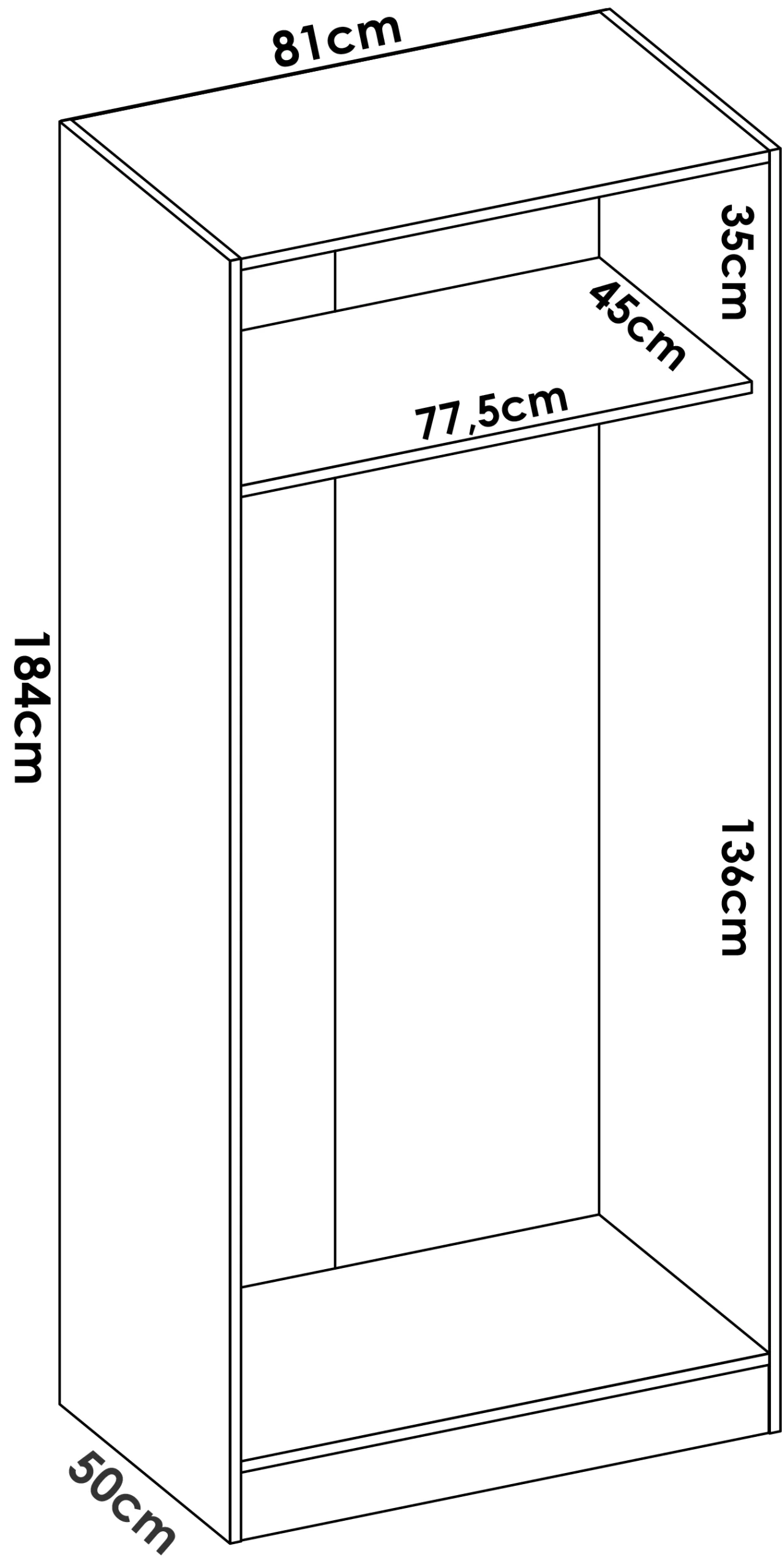 Con unas dimensiones de 184 cm (alto) x 81 cm (ancho) x 52 cm (profundidad), este armario es una excelente opción para optimizar el almacenamiento en cualquier dormitorio.