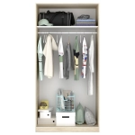 Este armario de gran capacidad está diseñado para acoger toda tu ropa de manera eficiente. Su interior viene provisto de una configuración práctica y funcional: