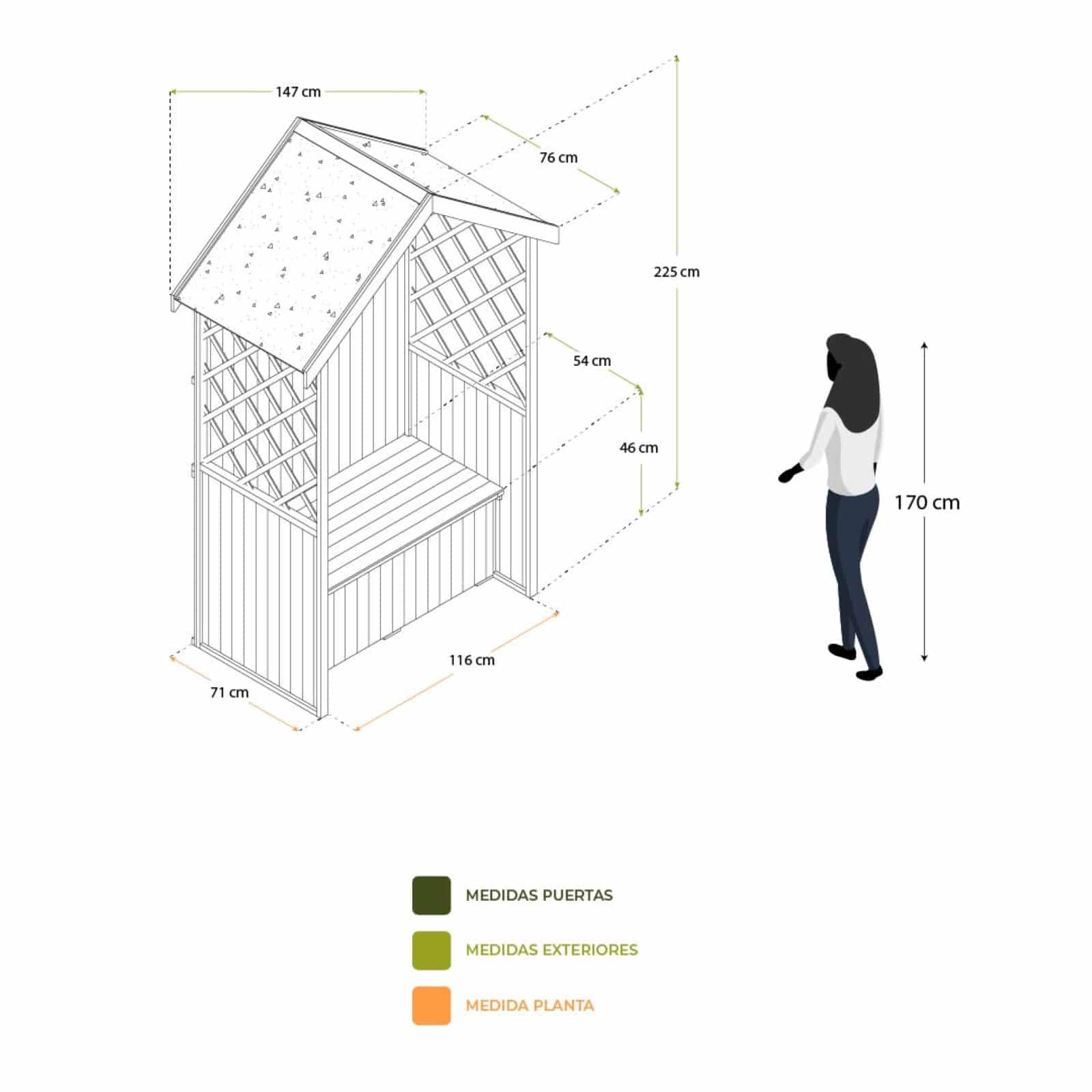 Banco madera con marquesina 141 x 76 x 225 cm Chloe Blanco