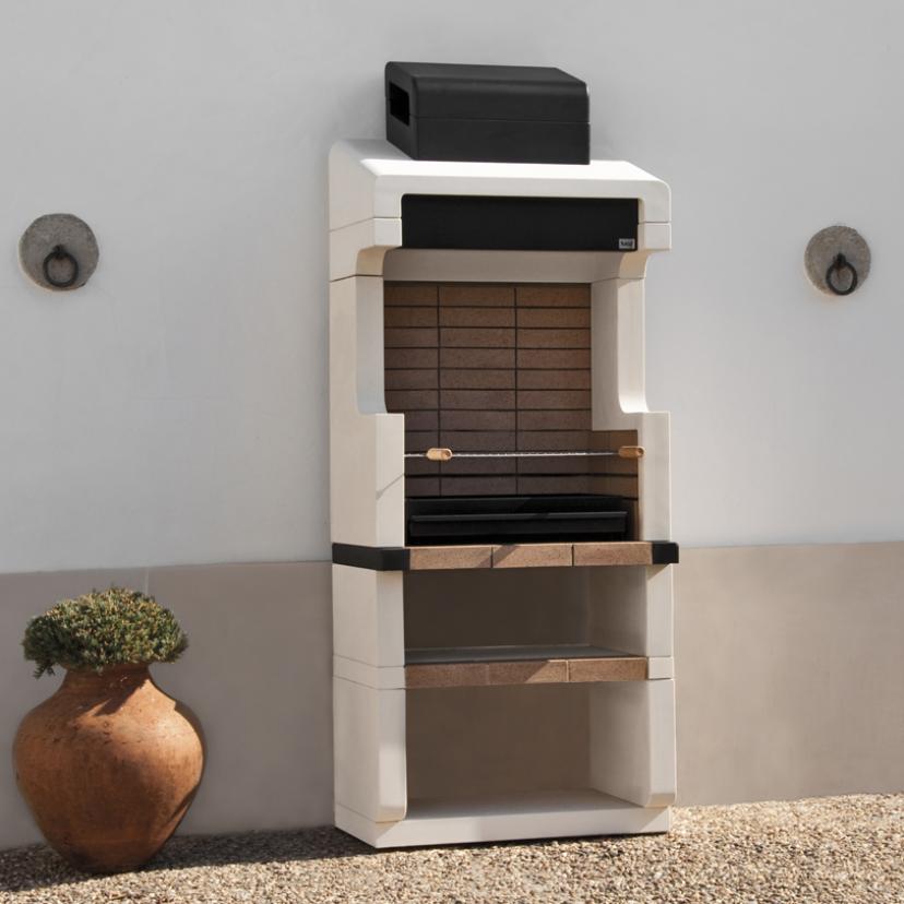 Barbacoa Durango Plus en hormigón blanco y ladrillo