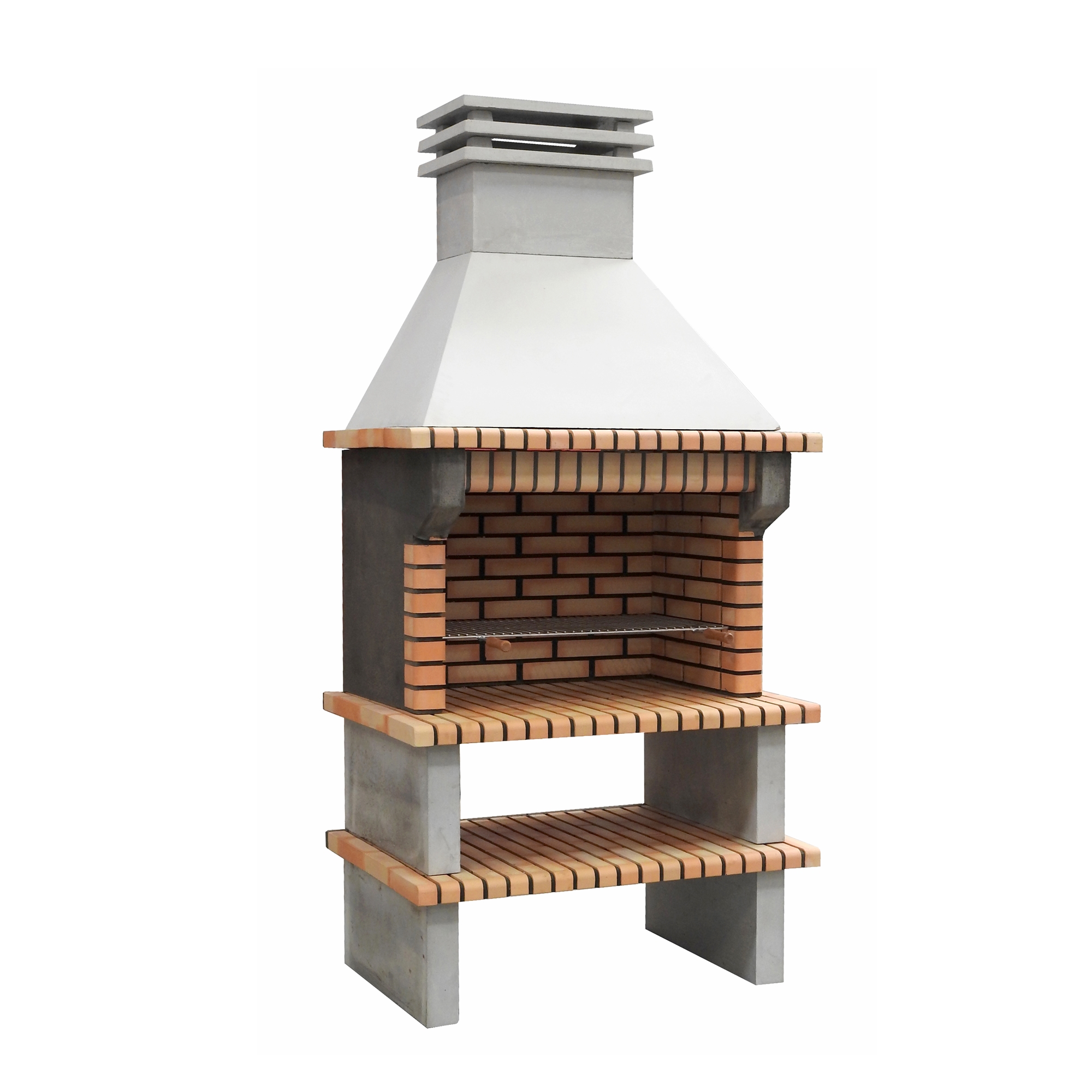 Barbecue PAELLA, un diseño único que fusiona la robustez del hormigón gris con el cálido toque de ladrillo naranja claro. Su parrilla galvanizada de 89 x 50 cm te permitirá cocinar deliciosas paellas para hasta doce personas, creando un ambiente festivo y memorable en tus reuniones al aire libre.