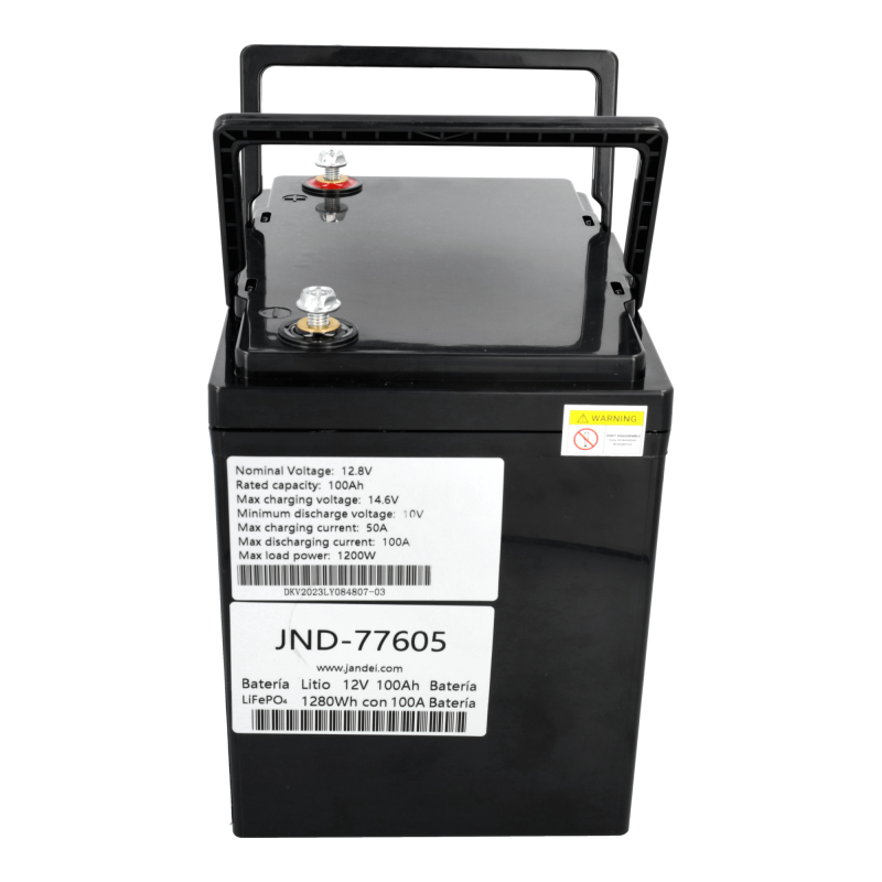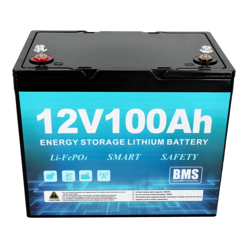 Con una capacidad de 100Ah y una tensión nominal de 12.8V, la batería puede almacenar hasta 1280 vatios-hora (Wh) de energía (100Ah * 12.8V = 1280Wh).