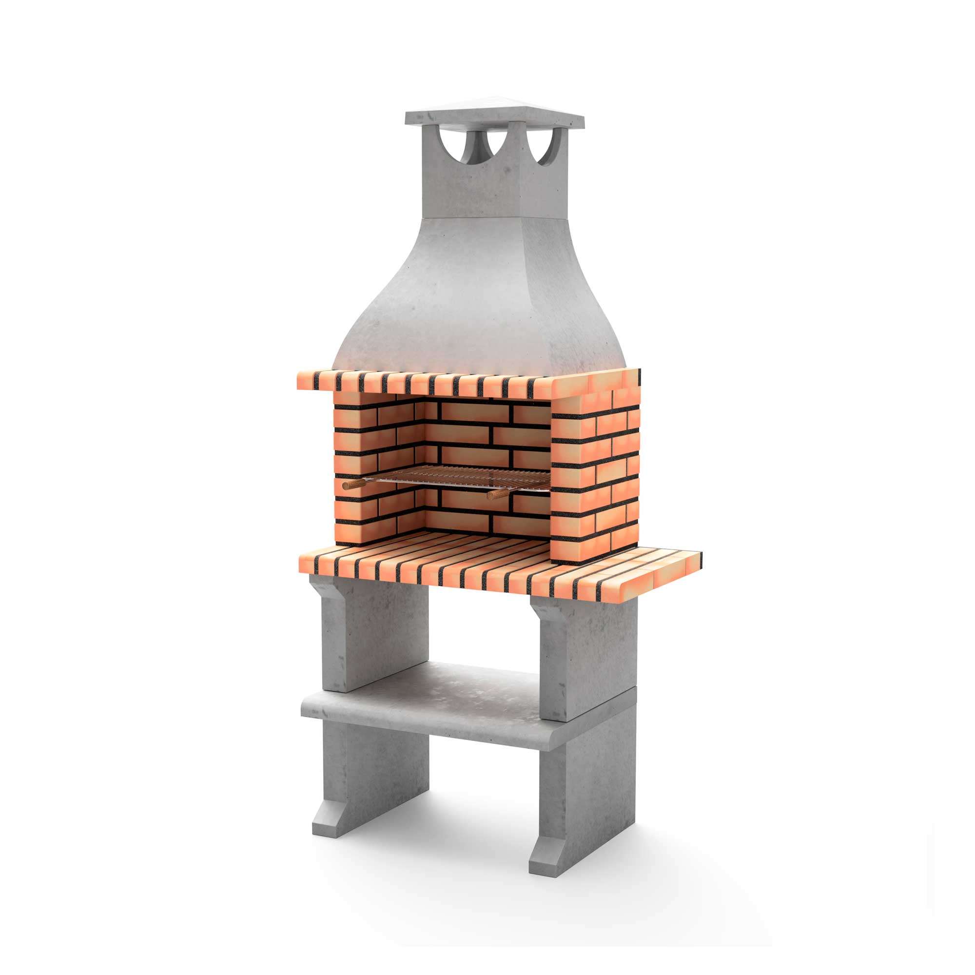 Fabricado con hormigón refractario gris y ladrillo naranja claro para una estética moderna y sofisticada.