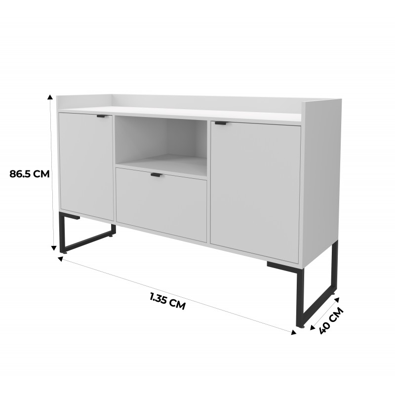 Buffet TOKYO, metal negro, 2 puertas y cajón, MDP color blanco, 135 cms.