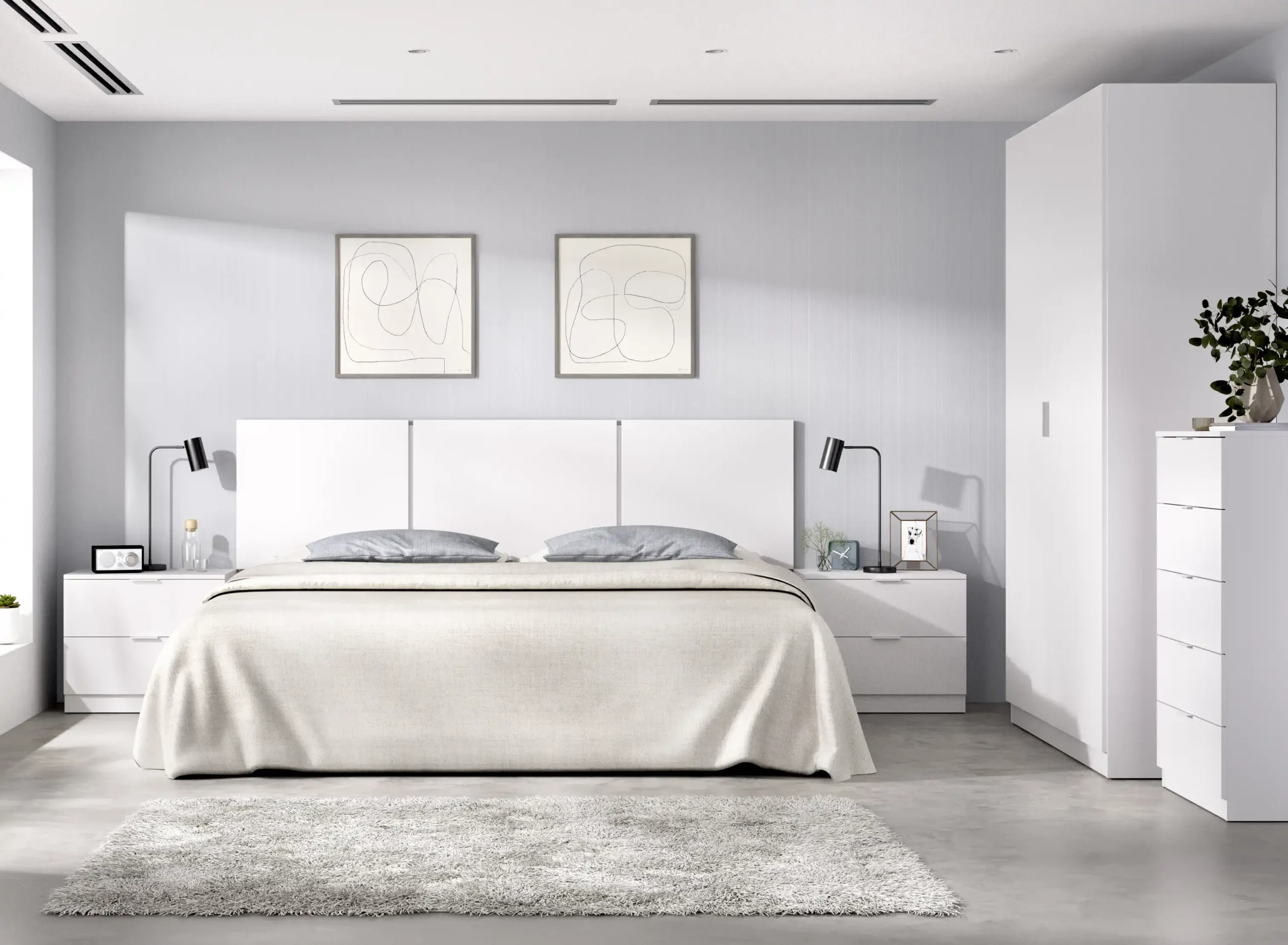 El Conjunto HAVANA se distingue por su diseño contemporáneo y sus líneas rectas y limpias, que aportan una sensación de armonía y amplitud a cualquier dormitorio. El color Blanco puro no solo ilumina la estancia, haciéndola sentir más grande y diáfana, sino que también ofrece una versatilidad inigualable, adaptándose a cualquier estilo decorativo, desde el minimalista hasta el más vibrante. Con HAVANA, tu habitación será un reflejo de calma y buen gusto.