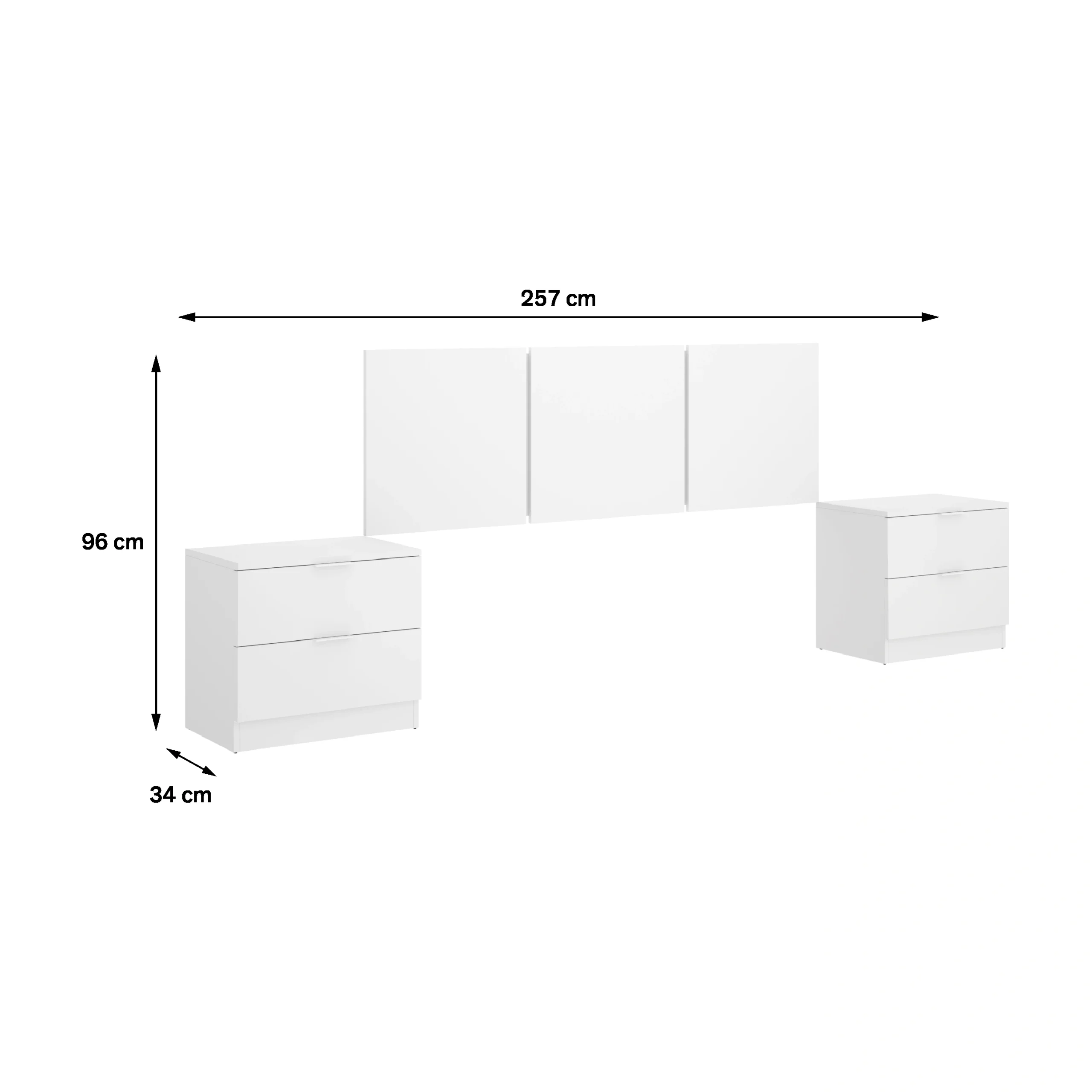 Cabecero de Tres Plafones con Dos Mesitas de Noche con 2 Cajones Havana