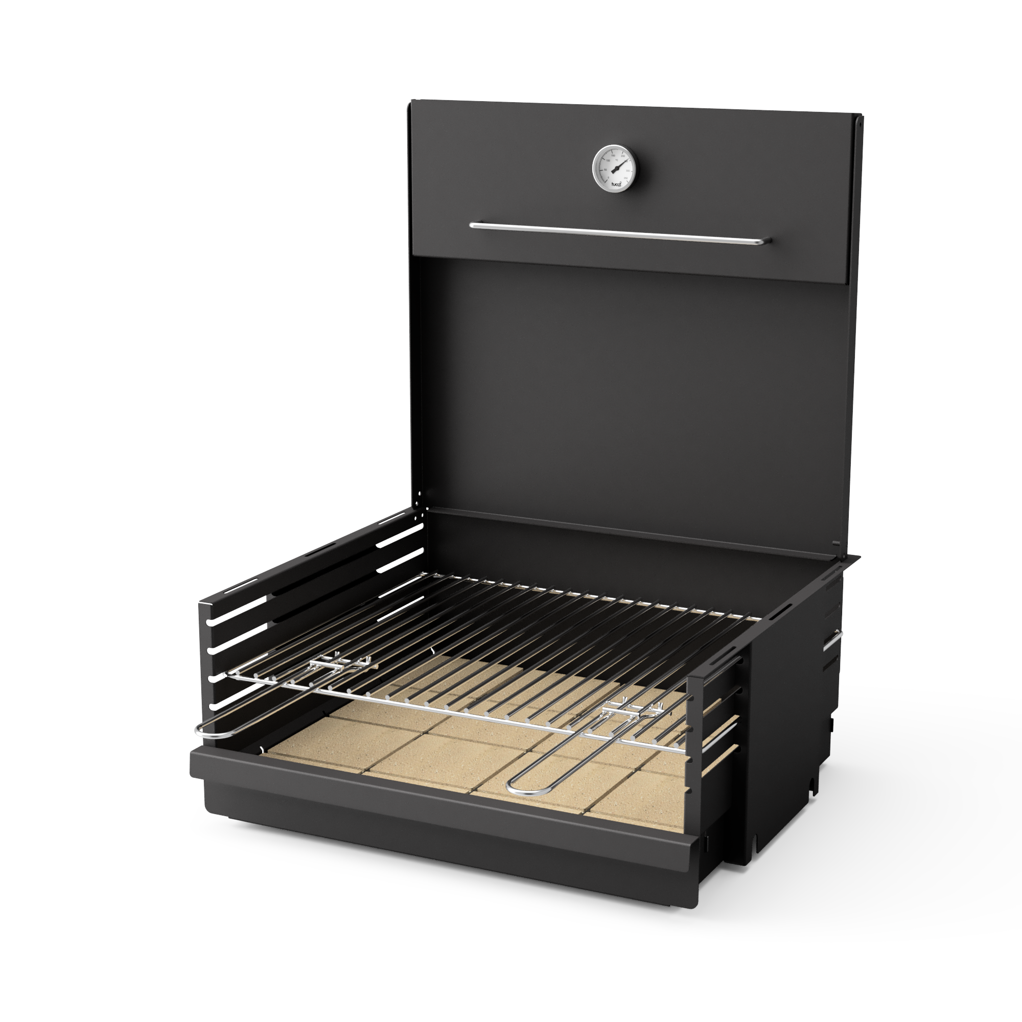 El SUD Plus Griller es la elección perfecta para los amantes de la barbacoa que buscan un rendimiento excepcional y una construcción duradera. Fabricada con acero pintado en negro, esta parrilla presenta un cajón extraíble para facilitar la limpieza de cenizas, asegurando un proceso de cocción impecable. La parrilla principal está hecha de acero inoxidable, garantizando resistencia a altas temperaturas y fácil mantenimiento. Las placas refractarias incorporadas optimizan la eficiencia del calor, proporcionando una cocción uniforme y rápida. El diseño inteligente incluye una tapa de acero con termómetro integrado para cocinar de forma indirecta, abriendo un abanico de posibilidades culinarias. Compatible con la serie SUD de barbacoas, el SUD Plus Griller te permite disfrutar de una experiencia de barbacoa única gracias a sus 4 niveles de cocción, ideales para preparar diferentes tipos de alimentos simultáneamente.