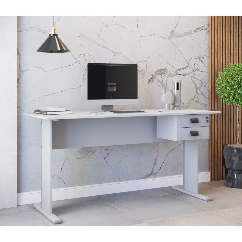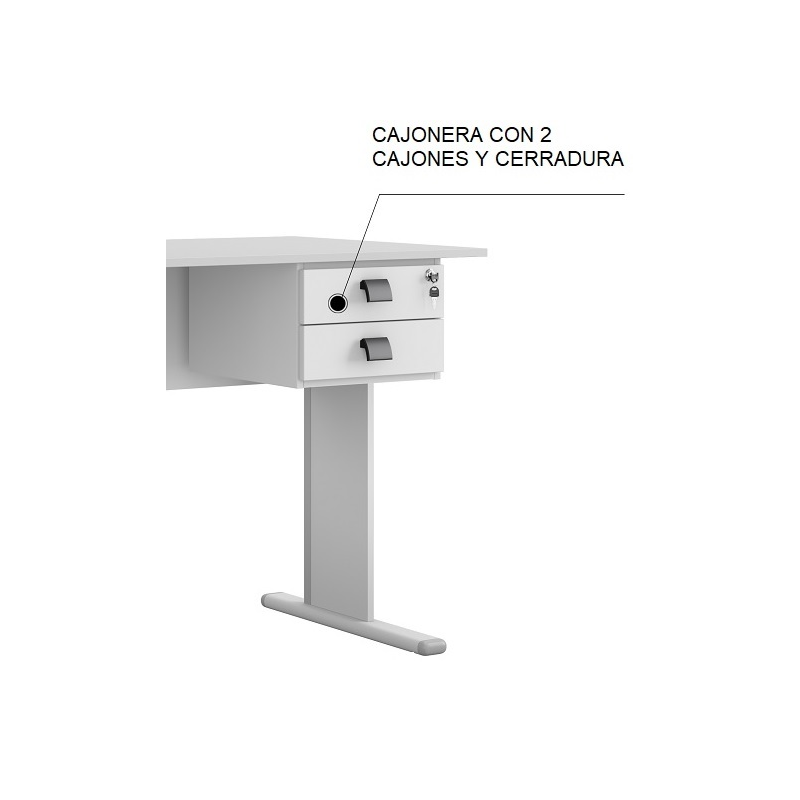 Cajonera WORK A200, fija, 2 cajones, guías metálicas, cerradura, platino