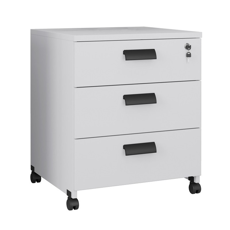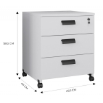 Cajonera WORK WK9, ruedas, 3 cajones, guías metálicas, cerradura, platino