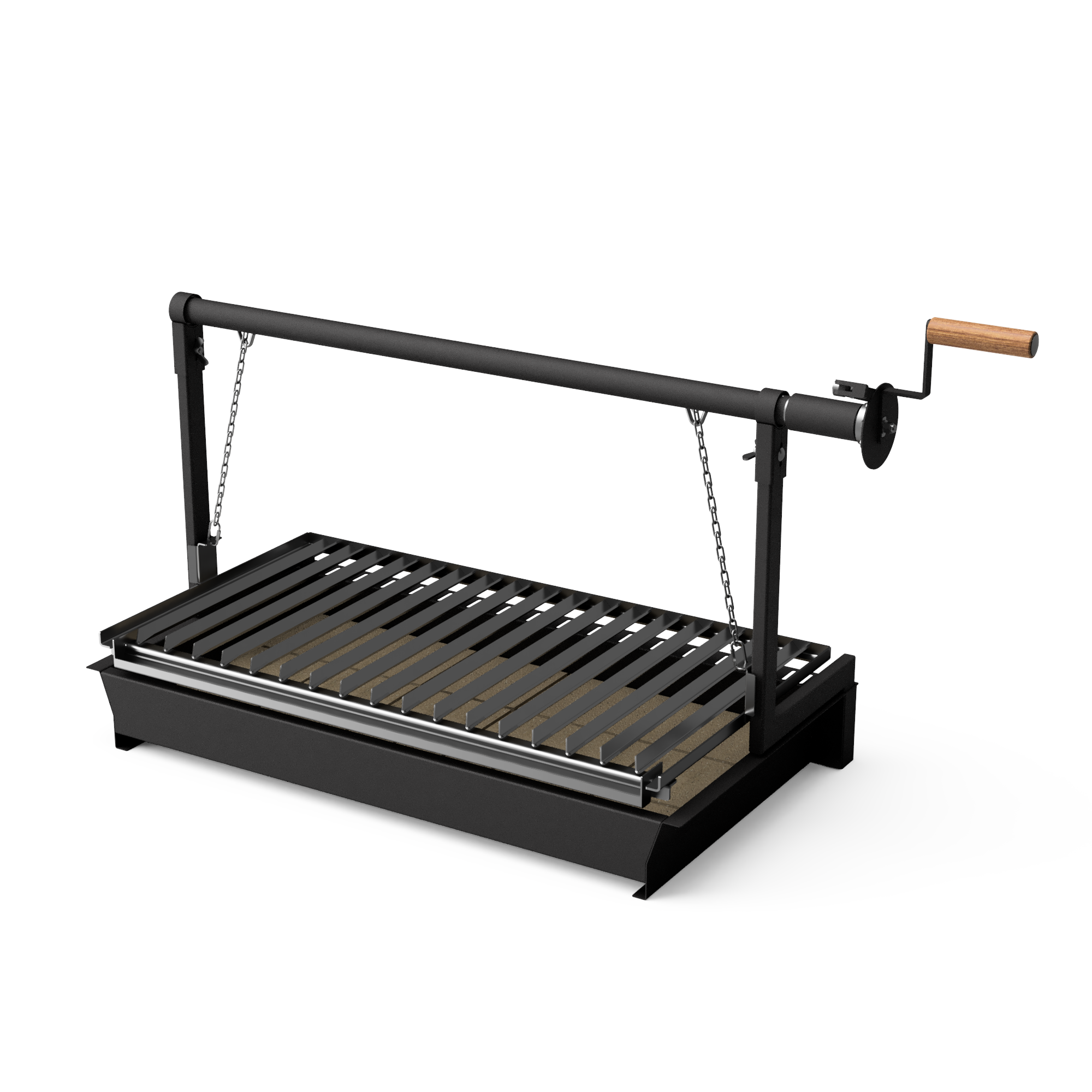 Sistema de elevación mediante manivela para ajustar la altura de la parrilla según tus necesidades.
