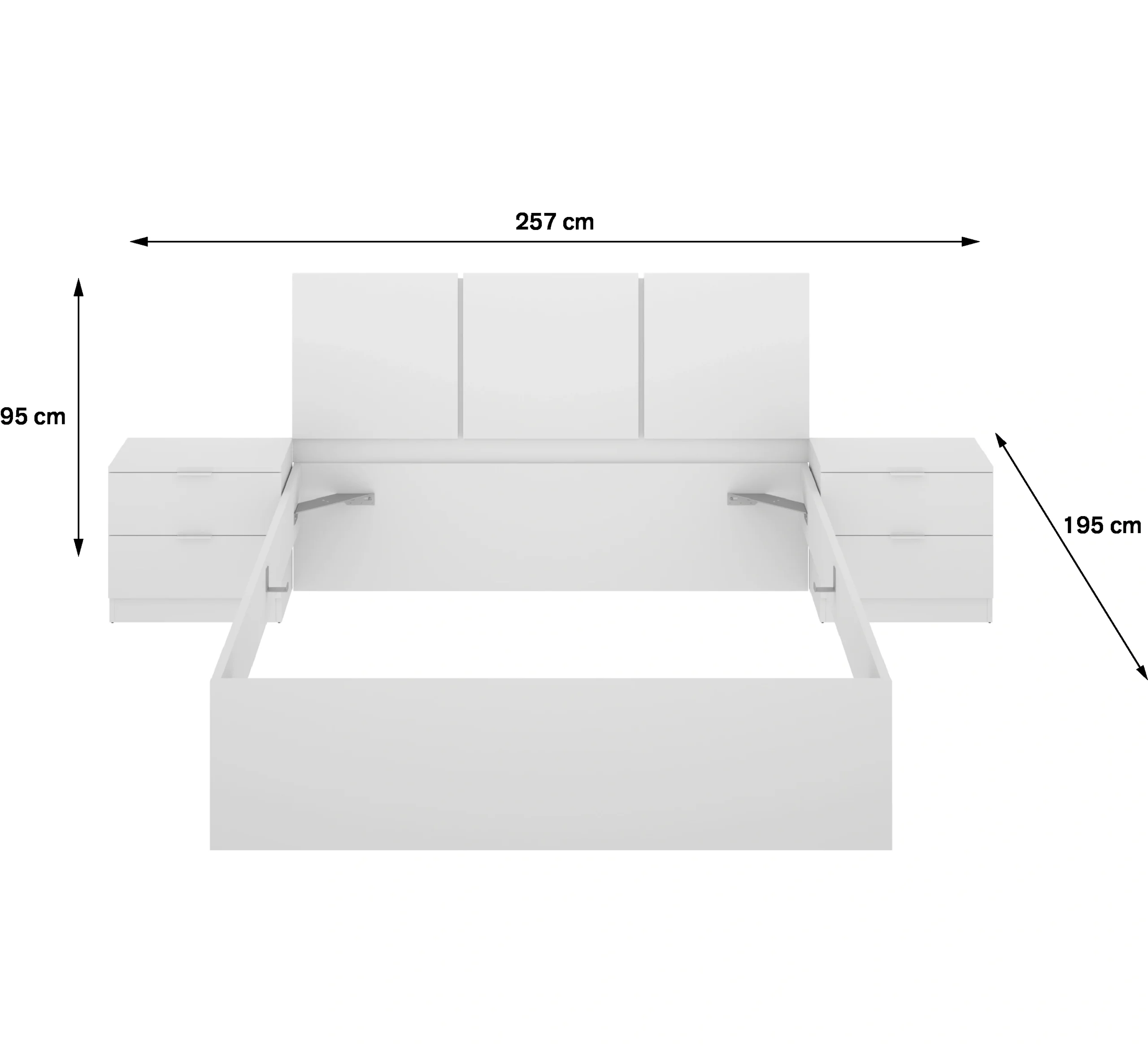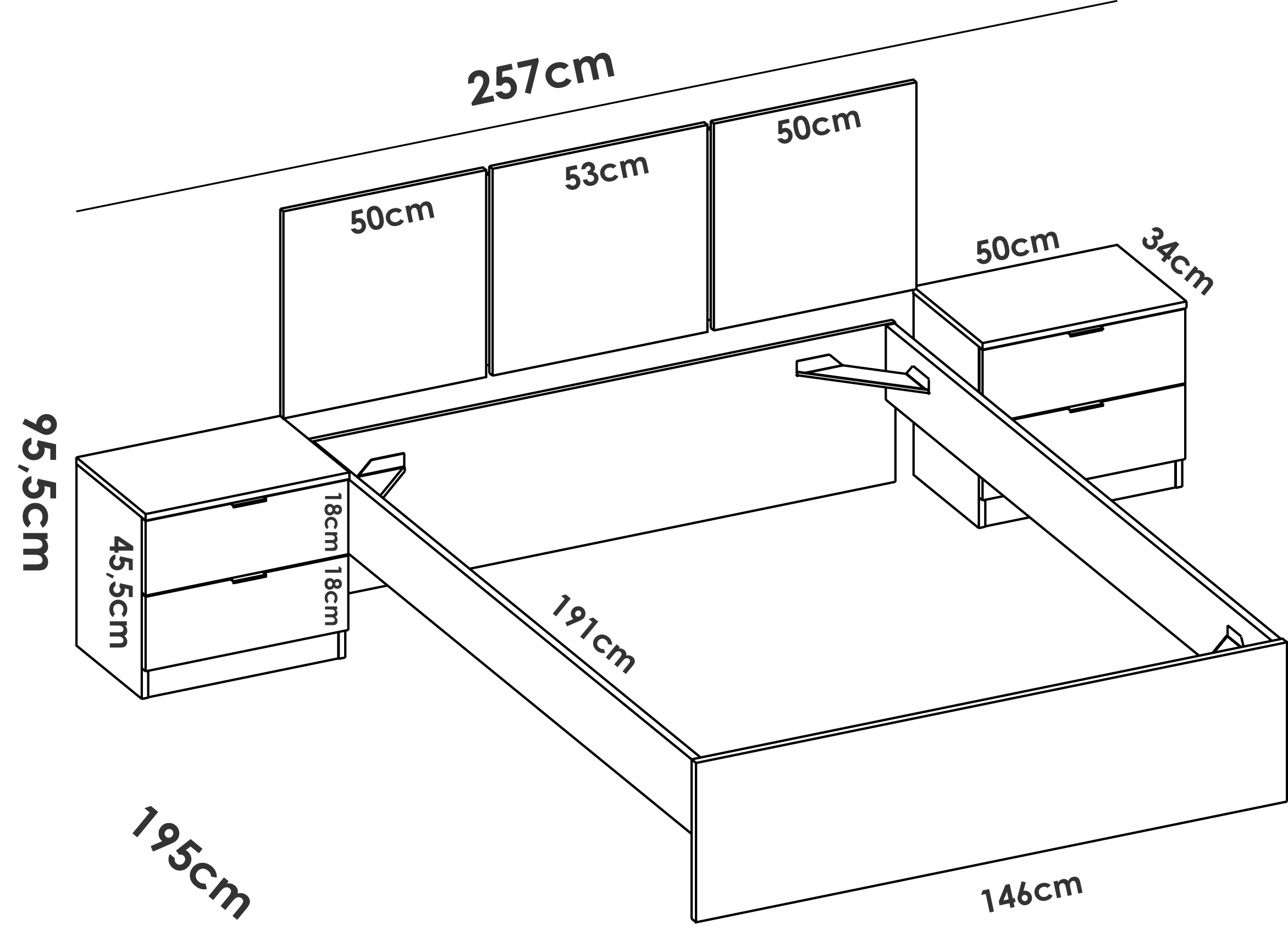 Cama de matrimonio con 2 mesitas y cabecero Havana 135-140X190cm