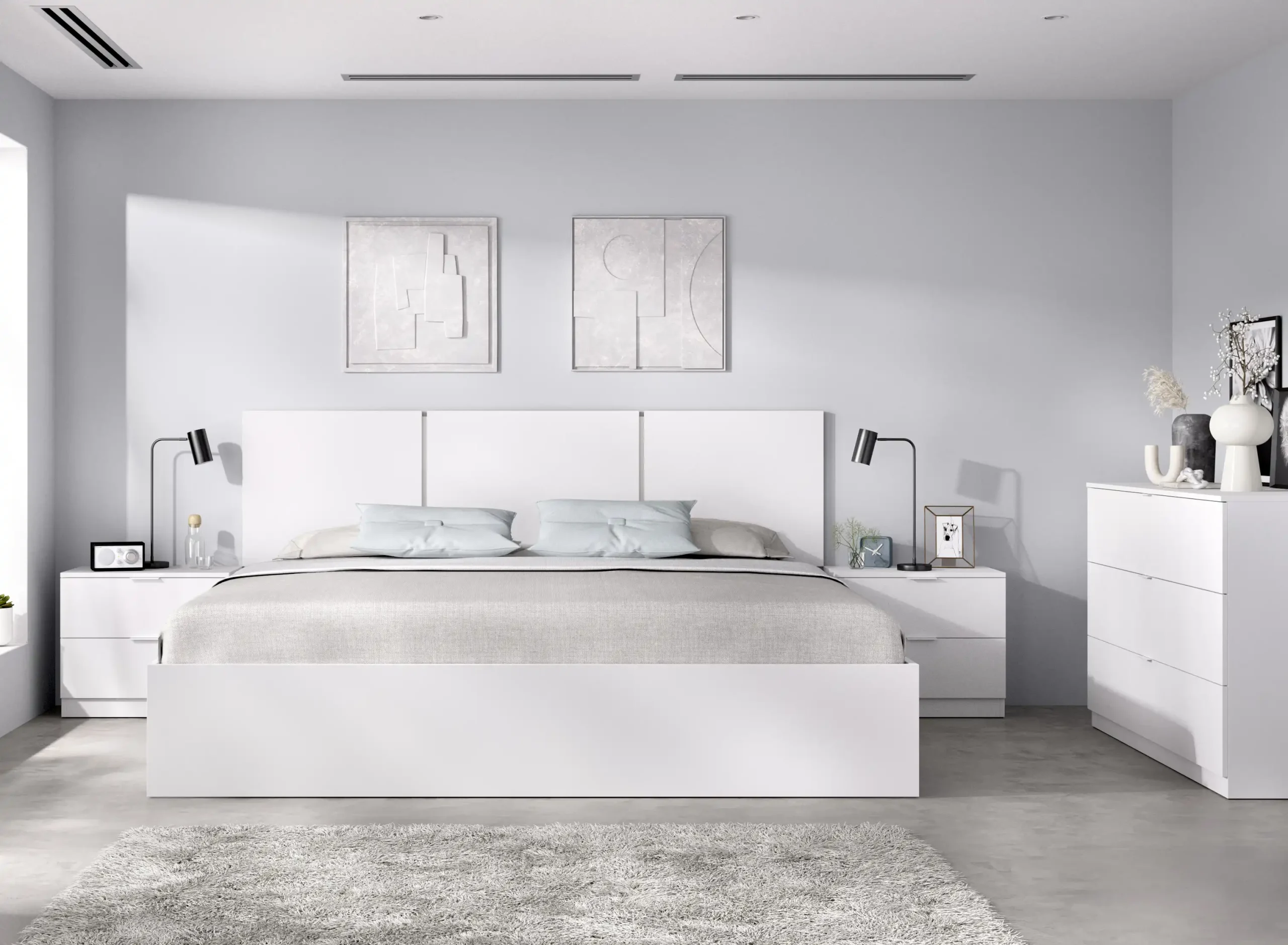 ¿Buscas una solución completa para tu dormitorio que combine un diseño moderno, elegancia y un almacenamiento práctico? El Conjunto de Dormitorio HAVANA de DEKIT GRUPO RIMOBEL es la elección perfecta. Este conjunto, en un impecable color blanco, incluye un cabecero mural, dos mesitas de noche y un aro de cama, creando un ambiente armonioso y sofisticado en tu habitación.